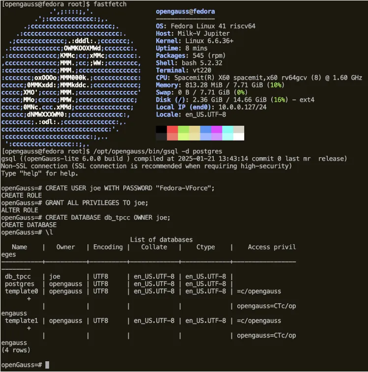 Fedora 作为 CentOS 和 RHEL 的上游,拥有丰富的软件生态,对企业领域具有重要影响。此次适配使得 openGauss 能够便捷地部署在多种 RISC-V 开发板上,为数据库应用与开发提供了更多选择,并推动了开源数据库领域的发展。