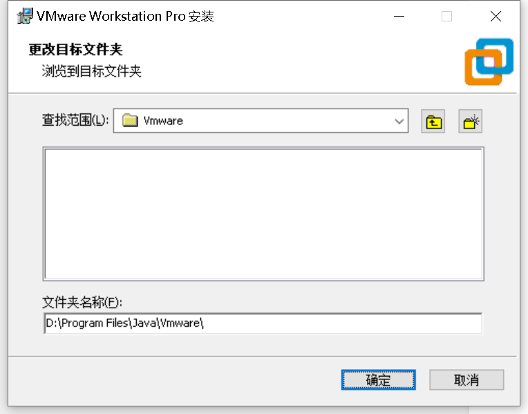 3.点击更改,建议安装非C盘外空间较大分区目录,因为虚拟机文件占空间较大,这样方便管理虚拟机文件,我这里选择D:\Program Files\Java\Vmware 一路下一步,开始安装