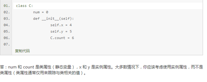4.请问以下类定义中那些是类的属性,那些是实例属性?