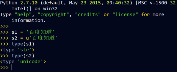 需要注意的是,以上是在Python2.7.10中,如果是在Python3中,是有区别的。这是因为,Python 2里的Unicode字符串在Python 3里就是普通字符串而已,因为在Python 3里字符串总是Unicode形式的。