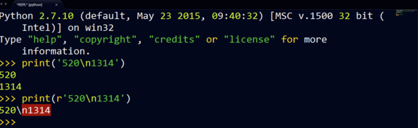 u'你好' #这里是把‘你好’用Unicode编码r'\nabdcd\rds' #这里加上r表示 把\nabdcd\rds看做原始字符,忽略一切转意字符。 |