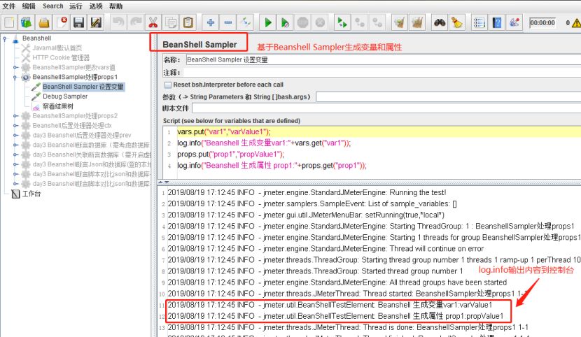 通过Beanshell Sampler,测试人员可以编写一些特定逻辑生成的数据,并且通过vars.get、vars.put 或者props.get、props.put 把相应的变量传递到Jmeter脚本当中。