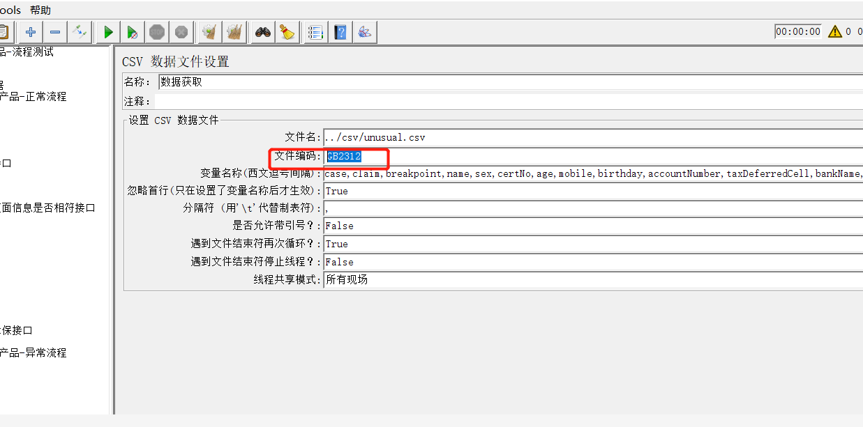 那些年jmeter工具遇到的坑-linux服务器执行时,csv文件中中文变成了乱码,需要修改csv设置中文件编码格式为 gbk,或者 GB2312