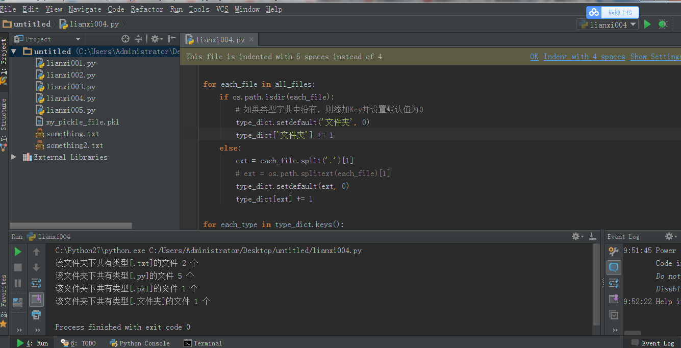 print('该文件夹下共有类型[.%s]的文件 %d 个' % (each_type, type_dict[each_type]))