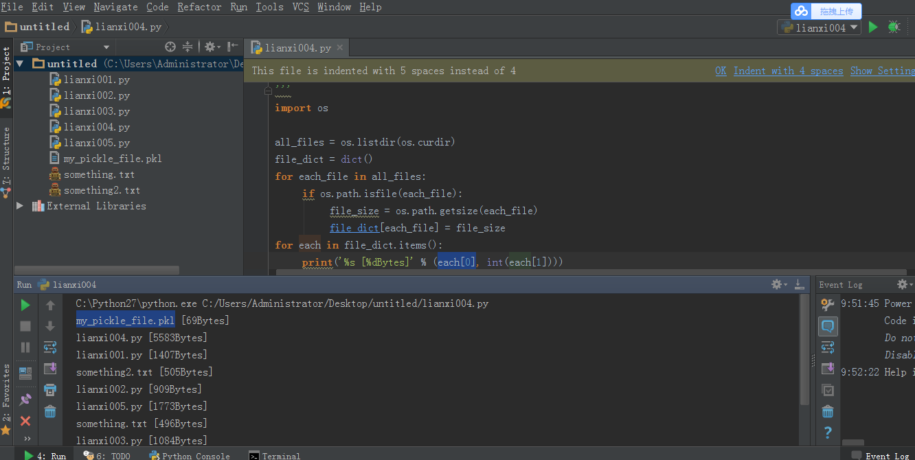 1 编写一个程序,计算当前文件夹下所有文件的大小,程序实现如下图: