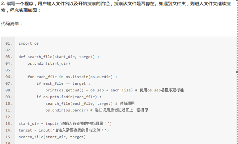 2 编写一个程序,用户输入文件名以及开始搜索的路径,搜索该文件是否存在。如果遇到文件夹,则进入文件夹继续搜索,程序实现如下图: