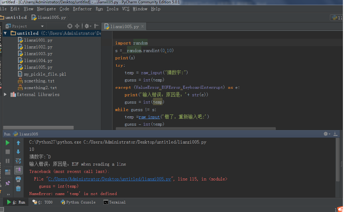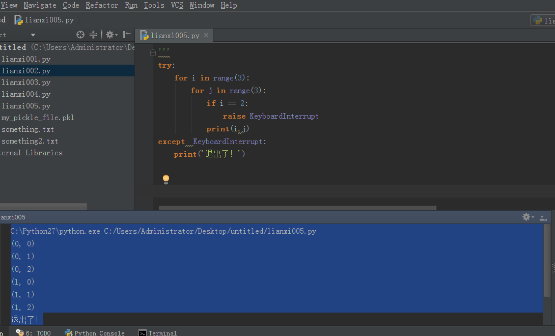 1.input()函数有可能参数两类异常:EOFError(文件末尾endoffile,当用户按下组合键ctrl+d 产生 和 Keyboardinterrupt(取消输入,当用户按下组合键ctrl+c产生
