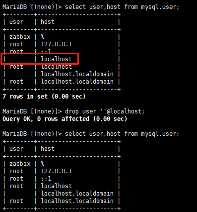 drop user ''@localhost; #删除空用户