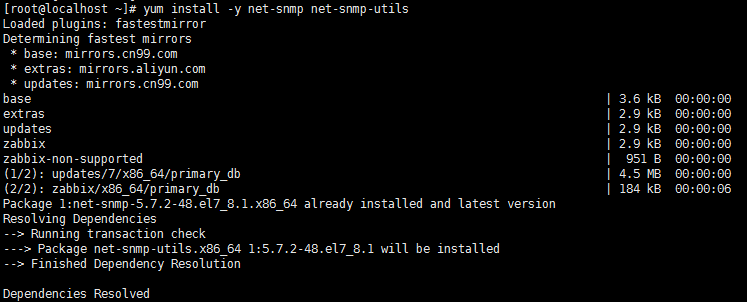 2、zabbix安装net-snmp、net-snmp-utils包,测试snmp访问