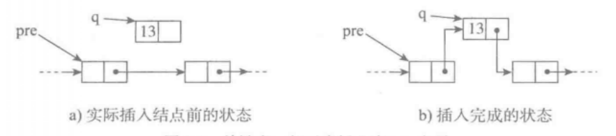 - 把pre所指向结点next域的值存入新结点的链接域 next