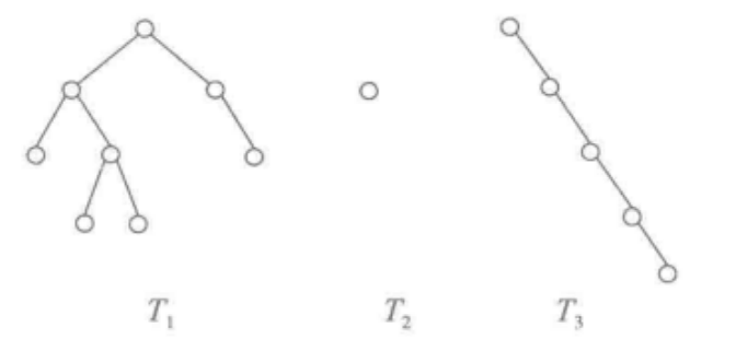 - 如图所示,途中给出了几种二叉树,其中左边一棵树比较符合直观,根结点有两棵子树,具有一层层 的结构;中间是一棵只包含根结点的二叉树;右边也是一棵二叉树,但其每个结点都只有一棵右子树
