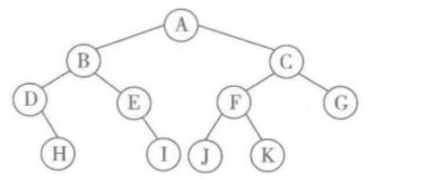 - 按先根序遍历,先访问根节点,而后以同样方式顺序遍历左子树和右子树,得到的结点访问序列:ABDHEICFJKG