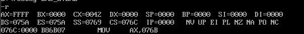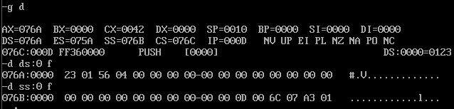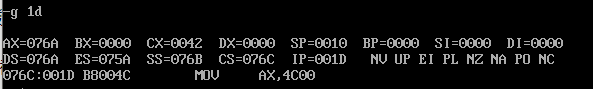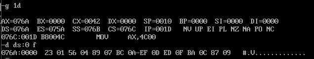 - 查看 cx 得程序所占空间,代码段的大小为 4FH - 20H - 10H =16H,反汇编得 a 和 b 的段地址: