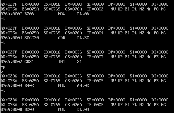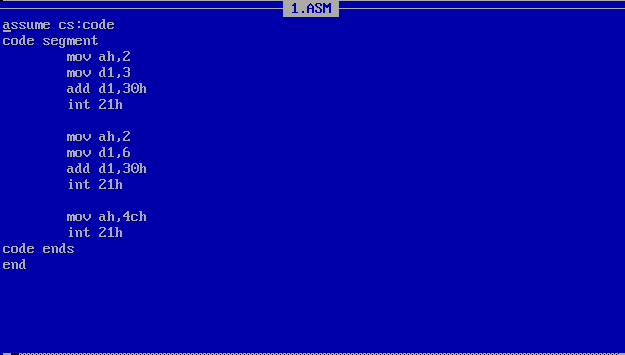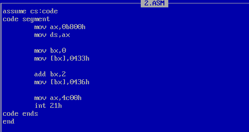重新打开 t2.asm,将源代码中 line7 的 0433h→0333h,line10 的 0436h→0336h, 然后重新汇编、连接、执行。