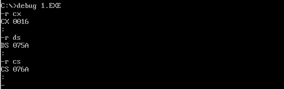使用debug调试1.EXE,分别查看cx,ds,cs的值。