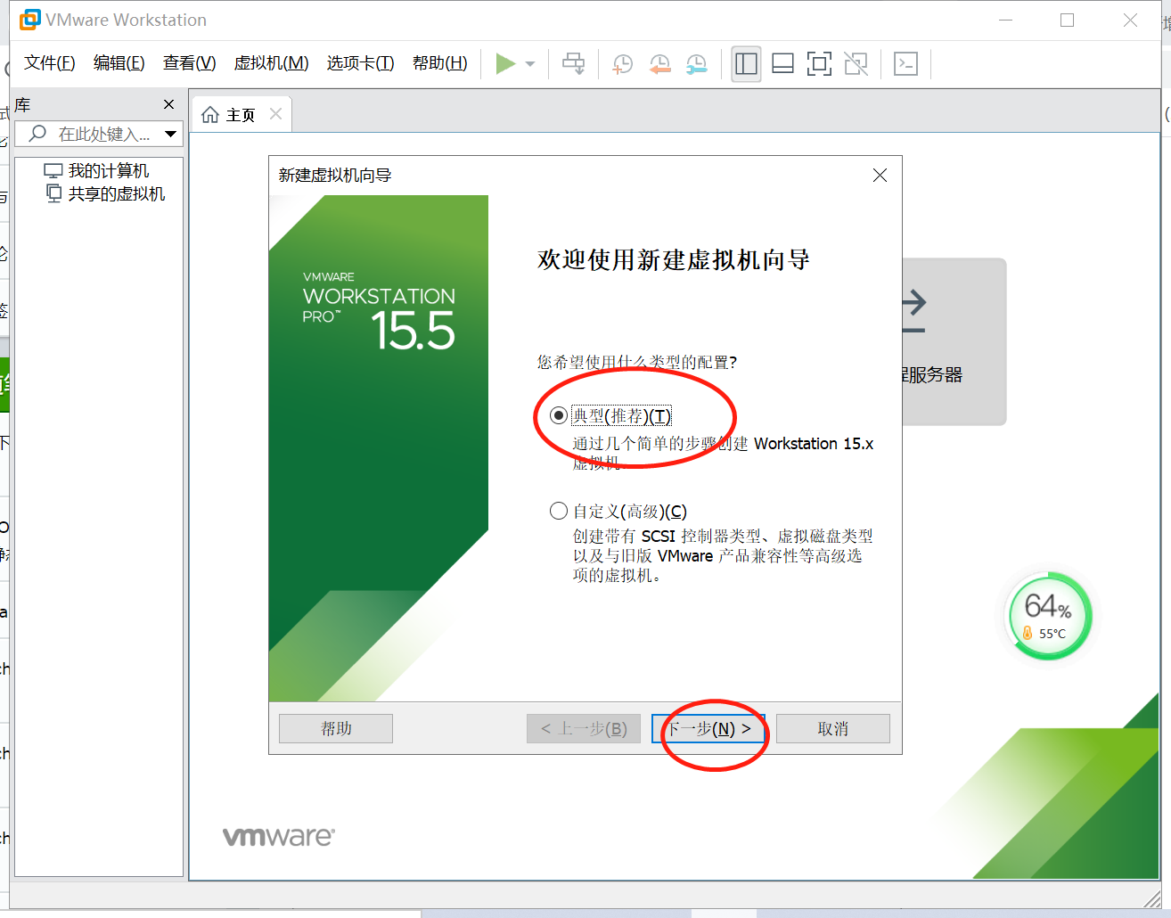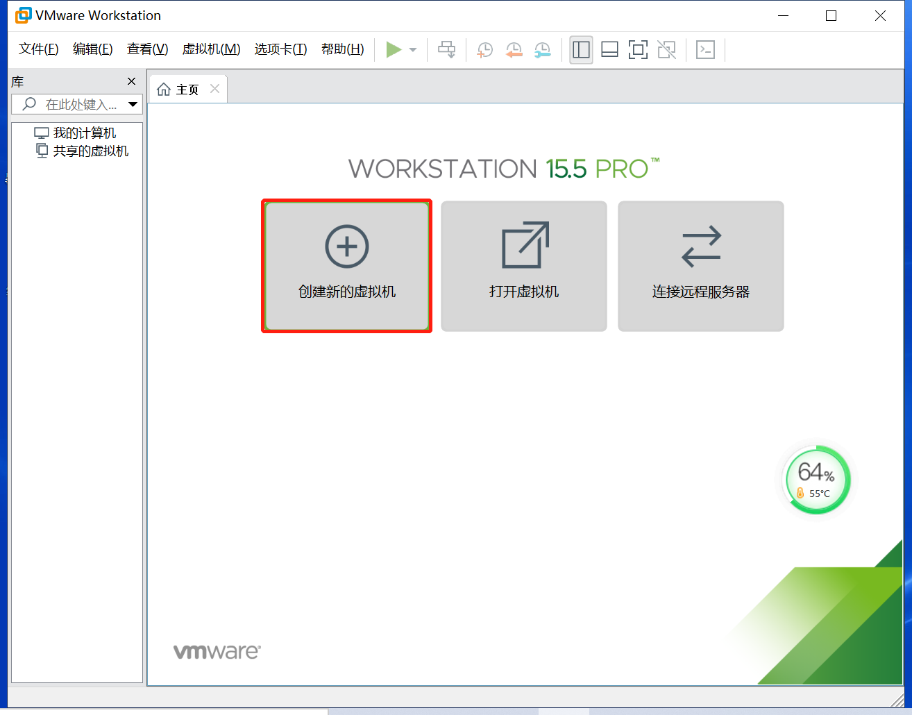 1.新建虚拟机:打开VMware15.5虚拟机,在欢迎界面点击新建虚拟机;