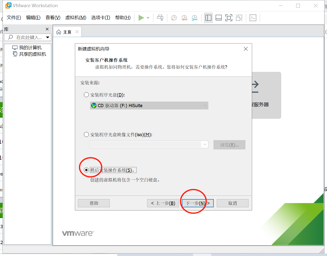 3.选定最后一项稍后安装操作系统,单击下一步;