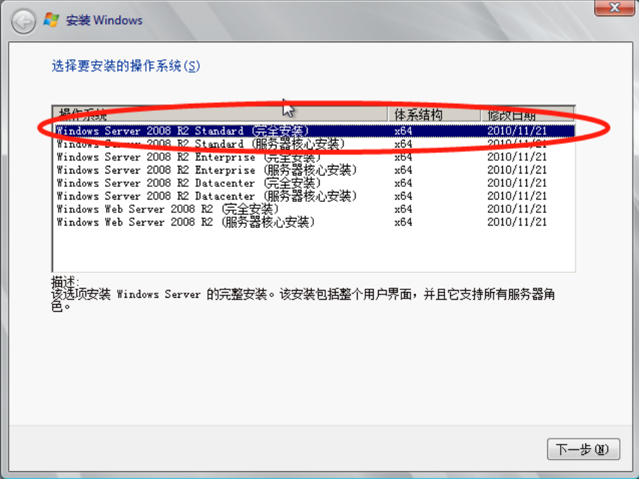 13.选择windows server 2008 R2 Standard完全安装(也就是说标准版完全安装)
