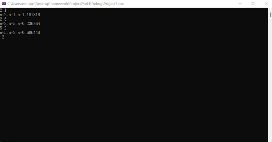 printf("n=%d,a=%d,s=%lf \n", n, a, ans);