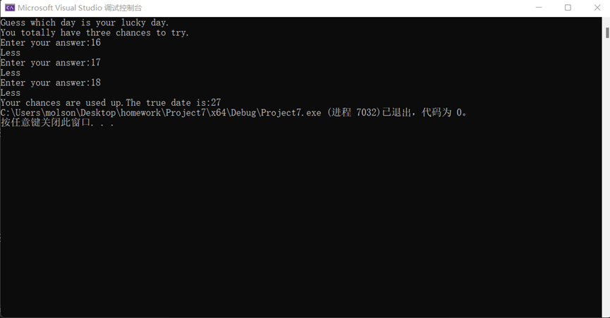 printf("Guess which day is your lucky day.\nYou totally have three chances to try.\n");