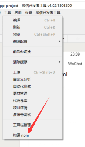 第二步就是,打开微信开发者工具,电击左上方 工具,找到 构建npm