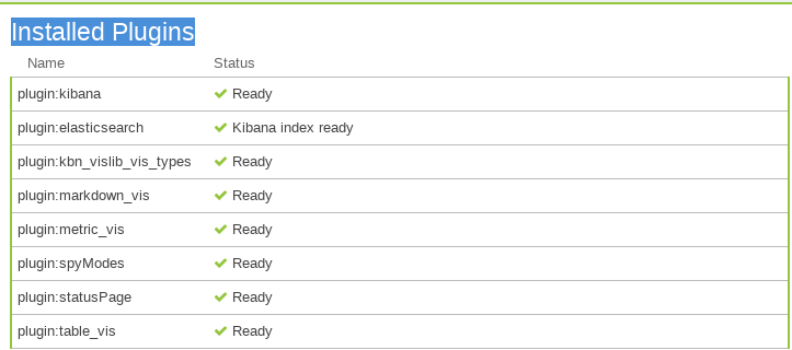 点击:settings--->status--->下滑(Installed Plugins)如果多为√说明kibana安装成功。