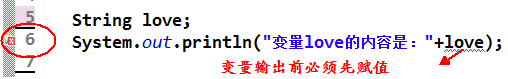 3、main 方法中定义的变量必须先赋值,然后才能输出