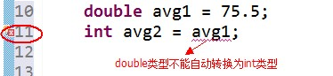 2. 目标类型大于源类型,如 double 类型长度为 8 字节, int 类型为 4 字节,因此 double 类型的变量里直接可以存放 int 类型的数据,但反过来就不可以了