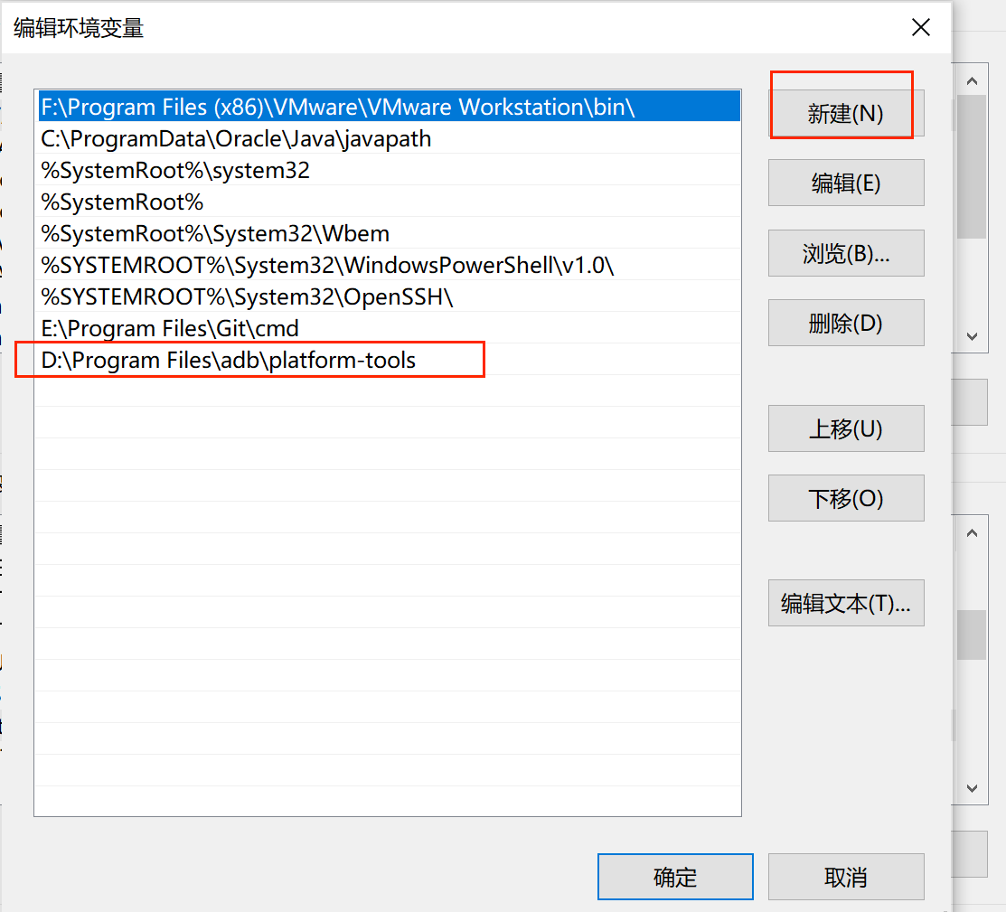 4.双击path后,点击新建,把刚才的文件夹地址黏贴上面