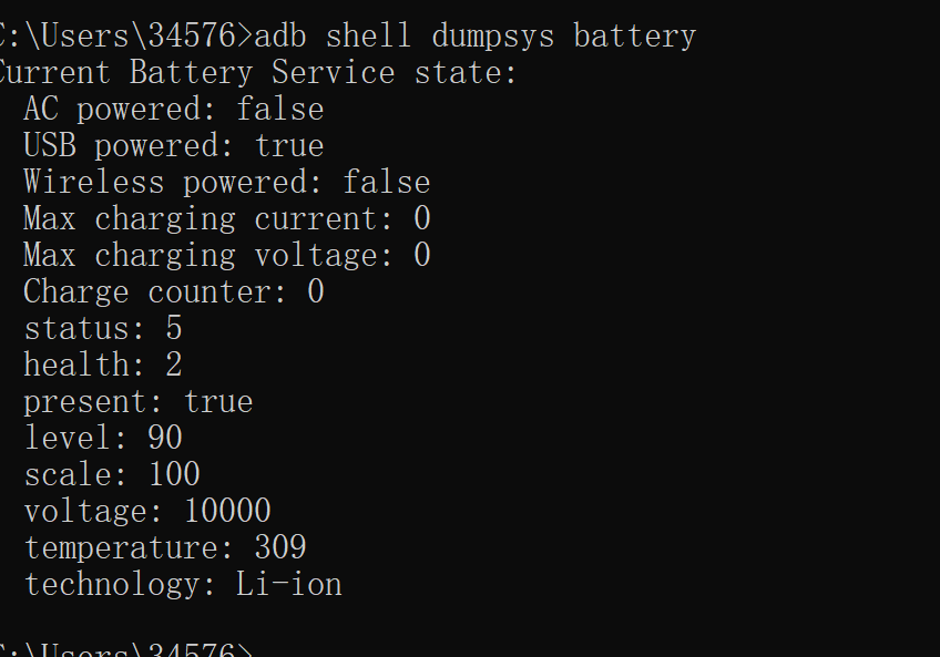 其中 scale 代表最大电量,level 代表当前电量。上面的输出表示还剩下 90% 的电量。