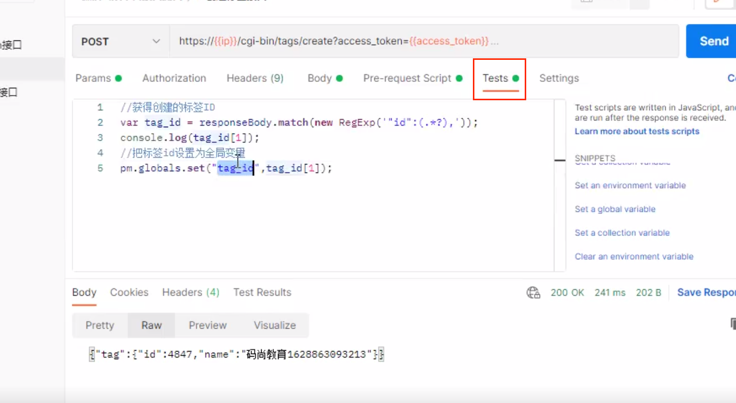 1.在一个链接中添加一个id为123的人物信息,然后再test断言中设置一个可以获取刚刚添加id为123的信息