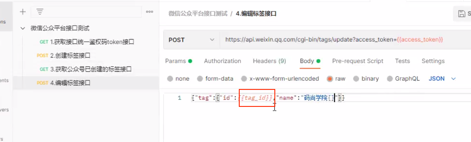 在以下信息显示,用{{tag_id}}可以i定位到所需要修改的地方中,再添加需要修改的信息