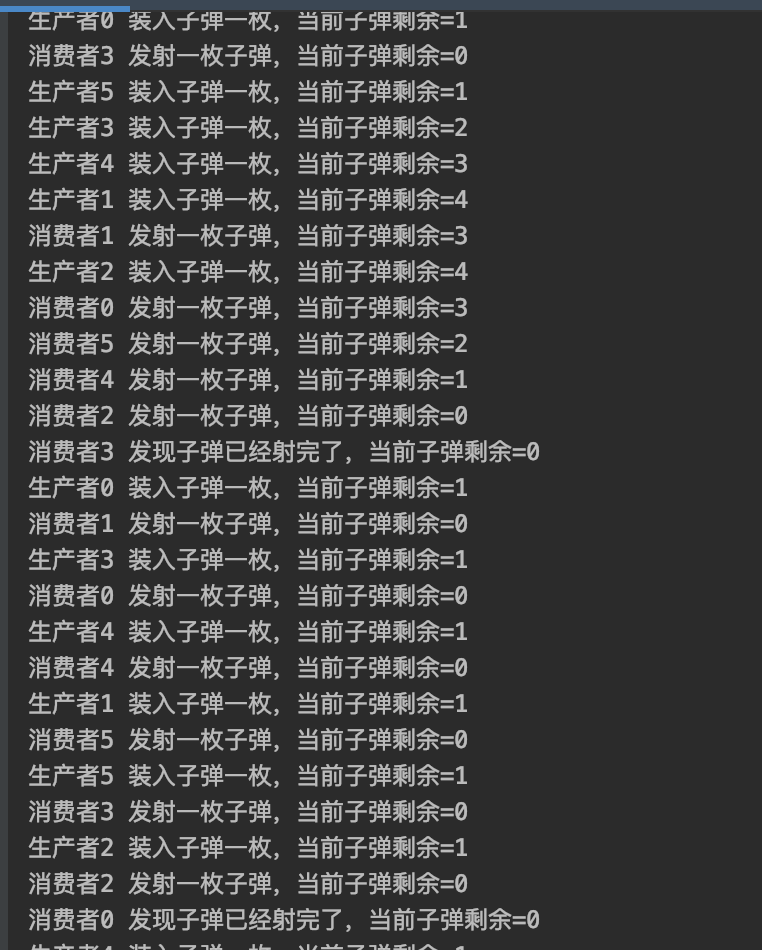 System.out.println(Thread.currentThread().getName() + " 发现子弹已经射完了,当前子弹剩余=" + zd);