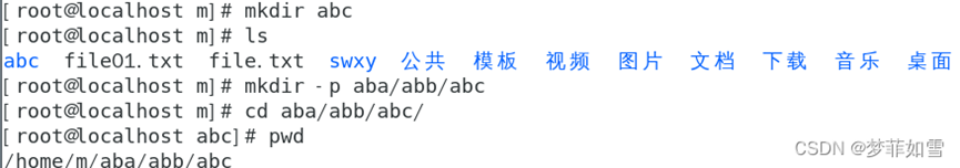 可通过mkdir命令创建一个空白目录,mkdir命令还可以通过添加"-p"参数来创建一个多层目录,如下。