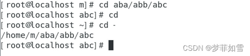 用户通过cd命令可切换目录,其中,cd命令不加任何路径表示直接返回到root目录。此外,“cd -”表示返回上次目录,如下。