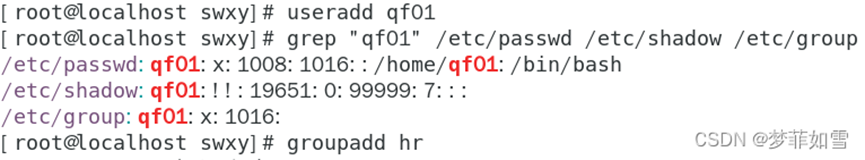 使用useradd命令可创建用户,不指定任何选项,使用grep命令过滤出该用户信息,groupadd命令可添加一个用户组,具体如下。