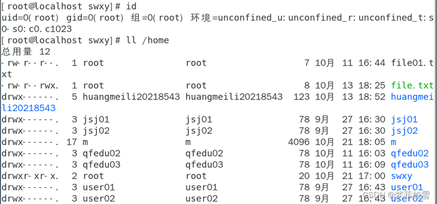 每个文件都有一个所有者,使用ll命令可查看文件所有者,具体如下。