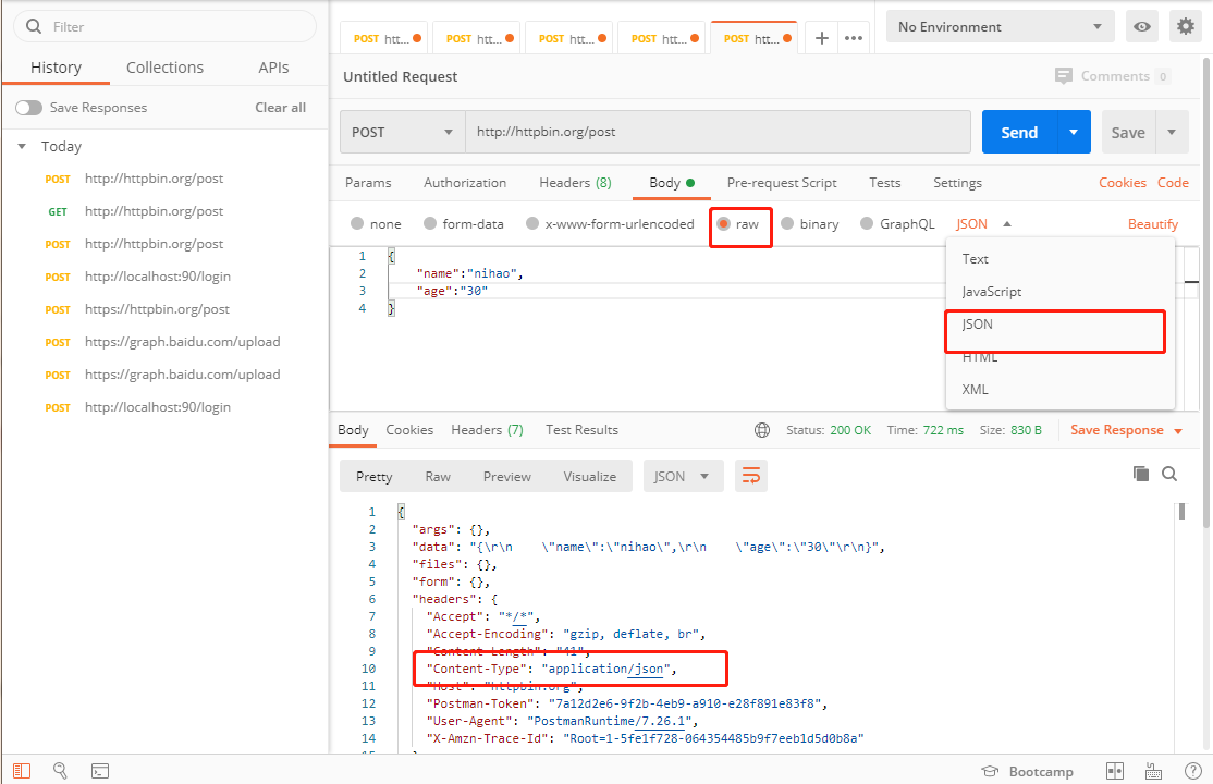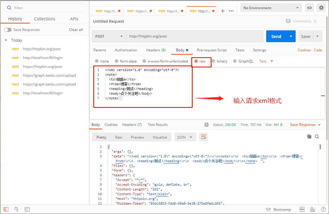 3、raw 可以通过raw进行传输txt,json xml,html的数据