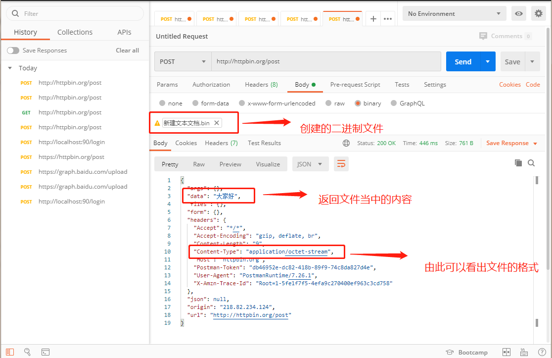 4、binary 表示只可以上传二进制数据,用来上传文件,一次只能上传1个数据