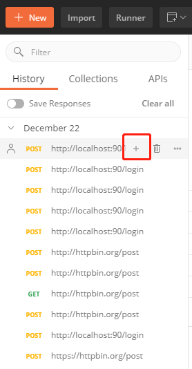 找到请求历史中需要保存的接口信息,点击+图标