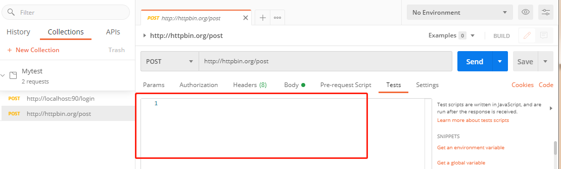 2、可以将测试脚本附加到请求并构建集成测试套件