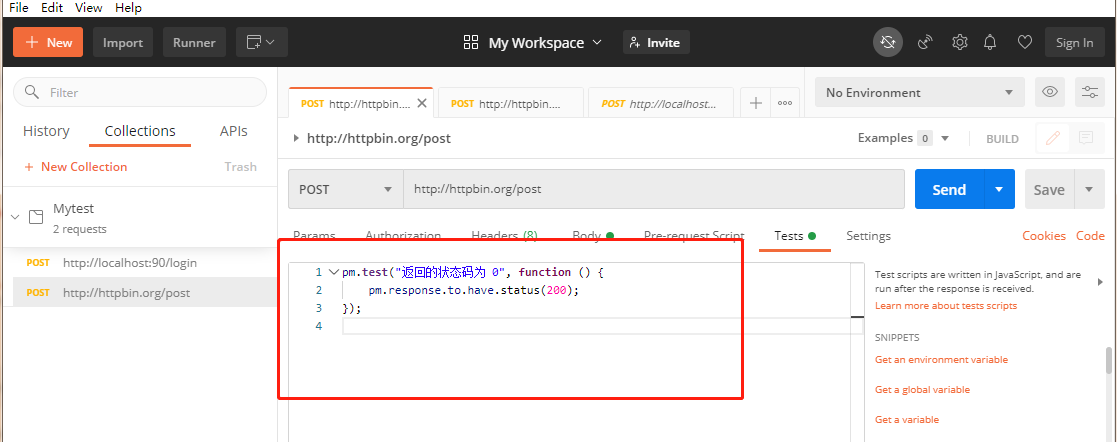当运行完多个接口时发现成功的结果跟实际的用例数不一致而且有的用例运行结果下面出现 this requests does not have any tests时,可能会有以下两种情况造成的