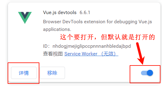 7.如果没有启用成功,可能原因之一,需要在扩展程序中,点击vue的详情,打开它的“允许访问文件网址”: