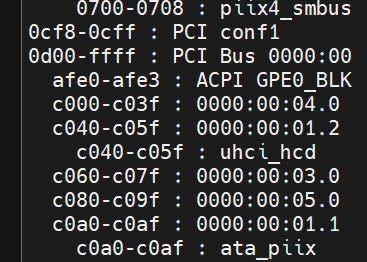 可以从/proc/ioports文件中获取当前分配给IO设备的所有IO地址树。比如这里: