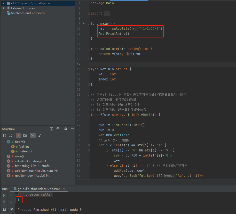 2021-05-23:给定一个字符串str,str表示一个公式,公式里可能有整数、加减乘除符号和左右括号。返回公式的计算结果,难点在于括号可能嵌套很多层。str=“48*((70-65)-43)+81",返回-1816。str="3+14”,返回7。str=“3+(14)",返回7。【说明】 1.可以认为给定的字符串一定是正确的公式,即不需要对str做公式有效性检查。2.如果是负数,就需要用括号括起来,比如“4(-3)”但如果负数作为公式的开头或括号部分的开头,则可以没有括号,比如”-34"和"(-34)"都是合法的。 3.不用考虑计算过程中会发生溢出的情况。