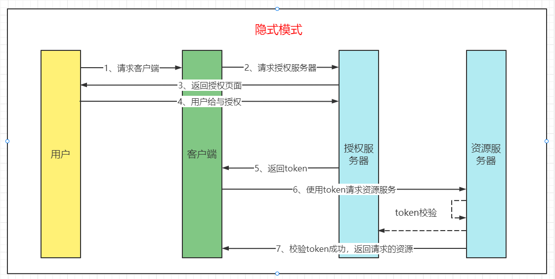 用户登录授权服务器并对客户端授权,授权服务器直接返回token,省略了授权码的过程。