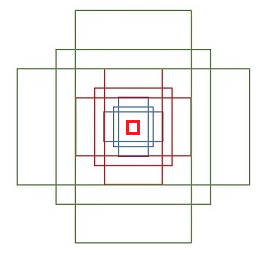 并且绿色的长宽是红色长宽的两倍,红色长宽是蓝色长宽的两倍