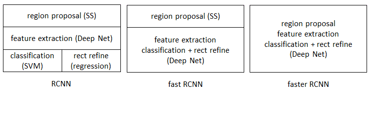 RCNN 的分类和回归,用 SVM 和回归算法,Fast R-CNN 则都是用神经网络处理