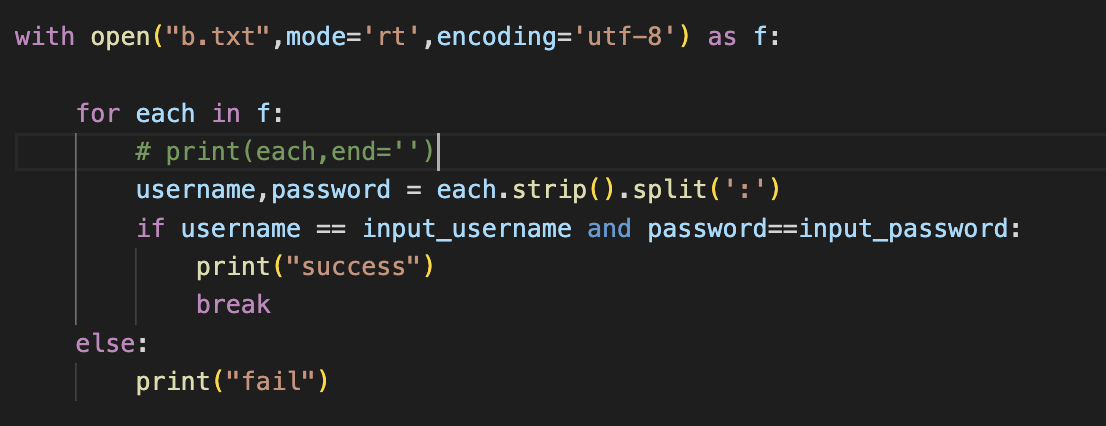 for each in f : 每行每行的去读取,优势在于内存不会过大