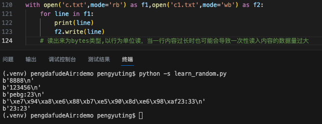 2、读出来为bytes类型,以行为单位读,当一行内容过长时也可能会导致一次性读入内容的数据量过大
